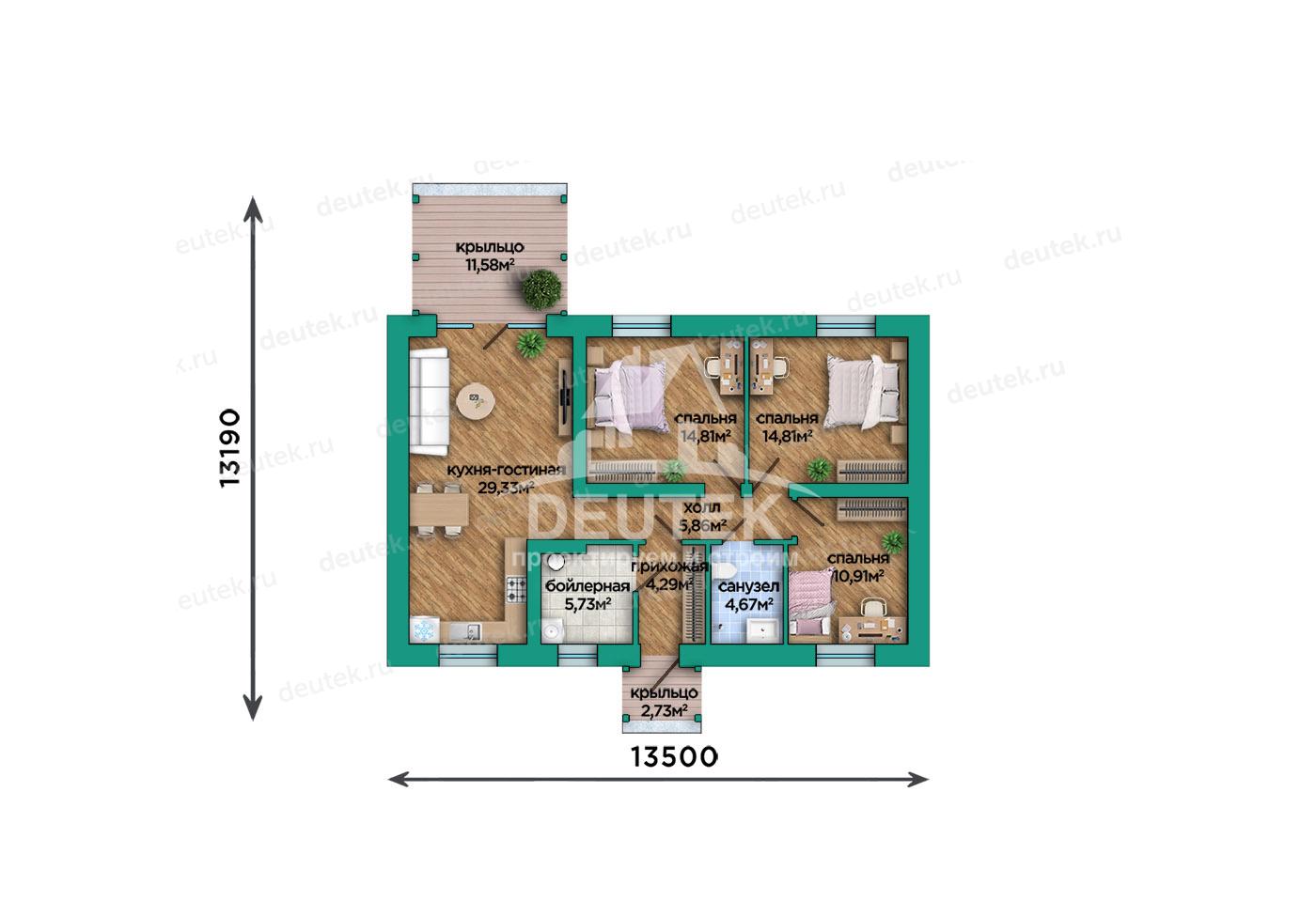 Проект квадратного одноэтажного дома с размерами 13 м на 13 м - LK-284