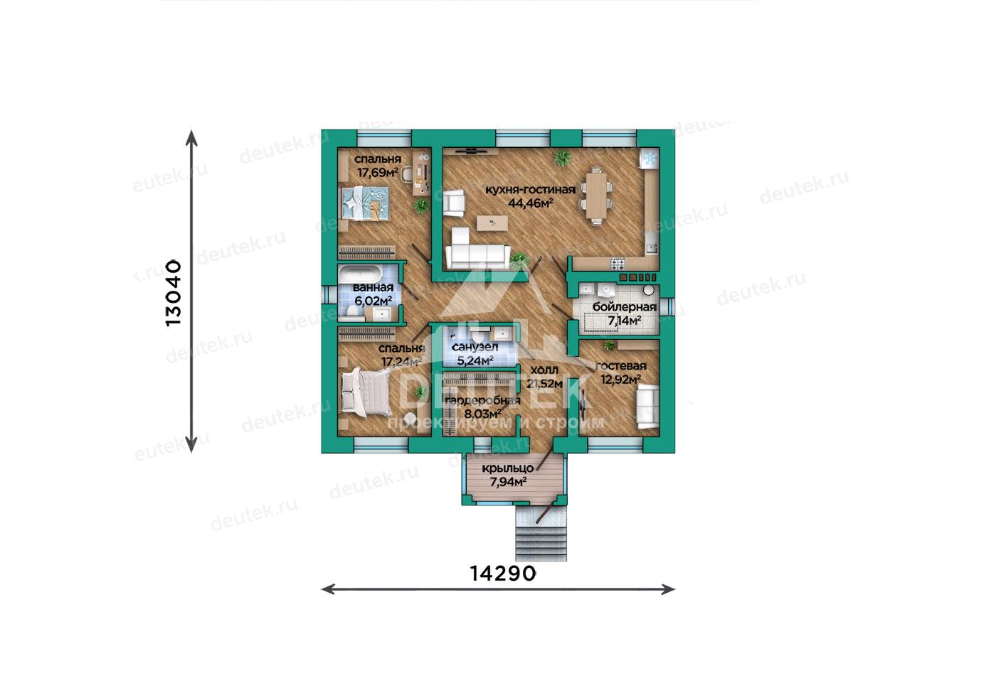Габариты дома: 14.29 x 17.52 м